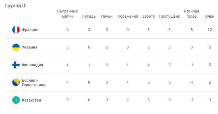 Yakoyu Ye Turnirna Tablicya Pislya Matchu Franciyi V Grupi Chs 2022 De Graye Zbirna Ukrayini Novini Futbolu